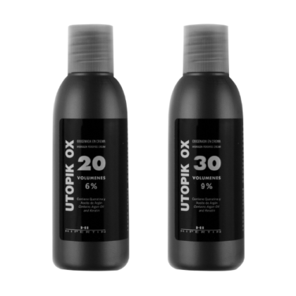 Hipertin Utopik-OX oxydant 3%, 6%, 9% lub 12% to oxydant, którego zadaniem jest przyśpieszenie procesu utleniania pigmentów koloru UTOPIK. Jego specjalna formuła została wzbogacona o olej arganowy oraz keratynę. Dzięki tym składnikom odżywia i nawilża włosy.